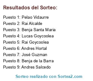 Lista de participantes: Agustin Donos, Andres Hortal, Andres Salcedo, Benja de la Barra, Benja Santa Maria, Diego gonzalez, Isma valdes, Joaquin Trucco, Joaquin Zavala, José Guzman, Juan Pablo Valin, Lucas Goycoolea, Martin Garcia Huidobro, Pony Carrasco, Pailon Gonzalez, Rai Goycoolea, Pelao Vidaurre, Alvaro Yevenes, Pancho Soler, Lorenzo Gimeno, Pedro, Rai Alcalde.