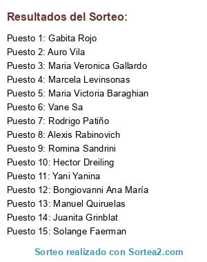 Lista de participantes: Juanita Grinblat, Rommel Berger, Macarena Higa, Gabita Rojo, Tu Recuerdo Souvenirs, Marisa Russo, Marcela Levinsonas, La Chuurra, Laura Ortega, Paula Maria Greco, Violeta Bodden, Marco Antonio Navarro Fortun, Graciela Filomeno, Lali Campos, Romina Sandrini, Luna De Miel, Lu Pelle, Lau Ferreira, Sole Arias, Analia Garay Galarreta, Vicky Castelli, SoLange Erika, Alfonso de Zavalía, Rossana Pamela Tiscornia, Lucha Diaz, Ceci Cassagne, Yani Yanina, Val Ballis, Solange Faerman, Griselda Cardarelli, Elba Martinez, John Lansbury, Sebastian Acosta, Maria Martinez, Ro Bravi, Bee Martinez, Jimena Carolina Montero, Lautaro Corradi, Farooq De Canterbury, Sil Fernandez, Noelia Rosenbaum, Gabriela Cordara, Coni Fodaro, Carolina Quinteros, Nazarena Noé, Silvana Otero, Flor Herrera, Susii Fo, Nadia Wengier, Juana Bedacarratz, Marcia Diz, Nadia Cristenssen Rauscher, Lucia Martinez, Lautaro Rios, Meli Vukusic, Alejandro Quechic, Romi Zabaleta, Flor Zulueta Encalada, Ine Benson, Maca Correa, Bel Vazquez, Susana Reisenman, Paula Daniela Pipi Morocha Dolz, Deborah Grin, Ines Acosta Grillo, Vanee Moraez, Teo Leon Lencinas, Karina Lopez, Lucas Beccaccini, Feria Toddler, Marcelo Ignacio Rey, Silvina Cabrera, Valeria Lobos, Verónica Piazza, Luciana Caldera, Romina Goldman, Claudia Oliverio, Mario Avalos, Jorge Santillán, Manuel Quiruelas, Macarena Carp, Emi Lopez, Agustin Barrios, Daniela Kranz, Ema Raymundo, Lucǐa Maltese, Mika Zapata, Demm Wayne, Roxana Calderon, Graciela Dipasquale, Auro Vila, Marcela Liveli, Gus López, Roberto Daniel Kuliz, Jose Fina M, Mica Rodriguez, Rocio Salazar Anderson, Dana Beccaccini, Andrea Gutierrez, Sol Binaghi, Vane Lopez Moccia, Jessica Medina, Ezequiel Gastón Cersósimo, Cchheecchhuu Nav, Micaela Luis, Gonzalo Ntvg Ferrari, Sofia Martinez, Pulga Tvz, Eve Susena, Laura Elizabeth, Deborah Grinblat, Reyna Molina, Fernanda Gonzalez, Charles Serques, Haneul Seo, Penelope Ricci, Leslie Neu, Rodrigo Lopez, Vale Manuppella, Eli Pii, Clau Lleonart, Graciela Almiron, Mariano Speroni Rodriguez, Gladys A. Gomez, Nati Baum, Ignacio Landa, Julieta Vainstein, Juanpi Chulo, Vane Sa, Rodrigo Patiño, Julieta Grinblat, Helen Carolay D. La O Lopez, Ivette Barbarán, Ester Alicia Orlandi, Laura Palacioss, Sebastian Orellana, Marina Stortoni, Quispe Elvira, Andrea Rasguido, Waly Huamani, María Belén Hernández, Nicolas Maximoff, Cinthia Ozuna, Yael Erika Yori Rubinich, Hector Dreiling, Eddy Best, Alexis Rabinovich, Mili Larcade, Varela Maria Alejandra, Ivanna Mercado, Ellen Carvalho, Roo Bernal, Nahuel Layral Villasboas, Cristina Angueira Vazquez, Maria Veronica Gallardo, Ale Avellaneda, Eli de Valencia, Adriana Emilia Naser, Sofia Iturbe, Amelis Beatriz Andrade, Antonella Logarzo, Paola Marsilli, Laura Martinez, Flavia D' Angelo Campos, Alejandro Ziomek, Inés Messiga, Constanza Campos, Jose Herbalejo, Alii Spicoli, Cecilia Medina, Jesi Gri, Ezequiel Irungaray, DebYon Eventos, Patricia Sgarano Torres, Vilma Beatriz, Natalia Lorena, Eer Martinez, Mili Cambiasso, María Del Pilar Avalos, Agus Fontenla, Vi Yeyi, Maria Victoria Baraghian, Pame Simon, Leticia Alici, Patricia Faulkner, Patricia Marcial, Maxi Acosta, Paola Signorelli, Gam Macchi, Bongiovanni Ana María, Amina Esbir, Joru Pompon, Maria Pavlovsky, Nahir Jara, Paulina Cirone, Susana Garcia, Lorena Beatriz Rumbo, Carla Agüero, Laura Sosa, Laureano De la Fuente, Maxii Carp, Liliana Johansen, Eliana Florencia, Marcela Rodriguez Benavente, Chueko Suarez, Kuki Bea, Bran Yani, Maria Susana Hernandez, .
