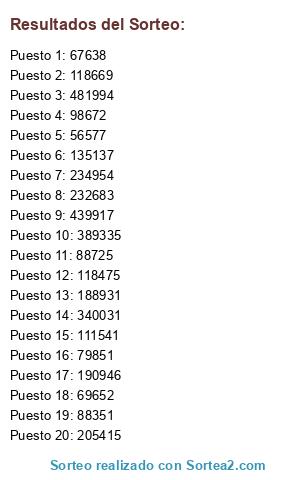 Resultados del sorteo: