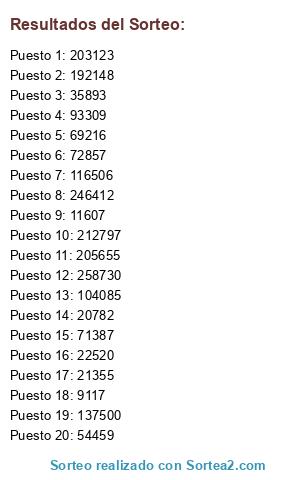 Resultados del sorteo: