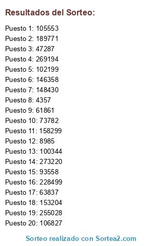 Resultados del sorteo: