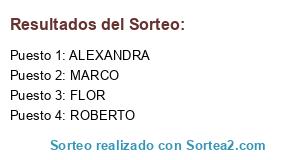 Lista de participantes: ROBERTO, ALEXANDRA, FLOR, MARCO.
