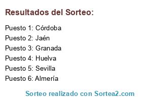 Lista de participantes: Almería, Córdoba, Granada, Huelva, Jaén, Sevilla.