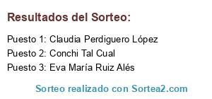 Lista de participantes: Yolanda Hg, Ali Claros, Rosa Maria Perez Solana, Sonia Villegas Rosales, Cristina Montes, Mavi van Meer, David Guil, Maribel Crespo Lozano, Ana Padilla, Mari Arjona Clavijo, Tamara Quesada, Josenene Gil Ortega, Alejandro Perea, Mari Lopez, Isabel Martin, Pilar de la Rosa, Mirian Amat Perez, Cristina Garcia, Laura Rogel Ramirez, Marta Pineda Jiménez, Sandra Mateo Abad, Marta Pereira Viaño, Berkioyxelo Gordis, Alba Ramos Gonzalo, Rubi Jim Mor, Judit Alba, Marta Montes, Iván Estévez Jiménez, Juan Aragon, Patricia Aguilar Montoya, Juan Sanchez, Mari Paz Alameda Palma, Maria Gonzalez Martin, Marina Perez Dominguez, Maria Jurado, Cesco Guez, Raul Bandera, Desi Desi, Chencho Rodri, Montse HDiz, Chito Agon, Irene Garrido Albarracin, Mercedes Gil, Carmen Santiago, Eltaco Fran, Mari Carmen Pérez, Ana Segovia Gil, Salvadora Gelo Vargas, Juan Maria Rodriguez Martinez, Marta Isla Guerra, Leonor Rojano Cobo, Aruca Tejón Cañete, Ana Crespo Vidal, Patricia Aparicio Ruiz, Alex Godoy Priego, Carolina Montes Bernal, Marisa Bueno Ferrer, Marina Parra, Maria Del Pilar Rodriguez Guerrero, Lorena Nav-Rob, Ana Gómez, Veronica Olmedo Rueda, Marilo Repiso Ramirez, Jose Francisco Gutierrez Navarro, Estefania Marfil Moreno, Maribel Delgado, Lorena Arag√ºez Portillo, Mónica Ruano López, Sandra Morilla Burgos, Mari Ramirez, Beatriz Triano Diácono, Maty Erika Sofía, Magda Sanchez, Mari Pili, Susana N√∫ñez Fernández, Pancho Pancho, Francisco Gomez Berdugo, Laura Brguez, Quico Rodriguez, Mayca Parra, Rosalia Aragon, Desire Bustamante Lisbona, Jessica Muñoz Romero, Beatriz Camarena Ruiz, Cristina Cristina, Tobi Rodriguez, Jessica Cañete, Loli González, Lorena Garcia, Rocio Robles Ruiz, Rosa Rosita, Isabel Bueno Morilla, Lydia Garcia Sanchez, Pilar Vázquez, Francisco Rodriguez, M Carmen Aguilar Poce, Rosi Trujillo Diaz, Eva Dominguez Galdeano, Desi Mostazo Lapeira, Lucia Santervás, Esther Martin, Paqui Perez Linero, Jose Carlos Martin Sanchez, Luis Postigo Marquez, Melisa Ruiz Roldan, Gema Angulo, Marivi Pallarés, Juan Fonti, Yoli Martín, Carmen C Racero, Sandra Martin Pineda, Pilar Guerrero, Mary Carmen Torres, Miriam Martin, Nuria Pastor del Amo, Maria Victoria Garcia Martin, Gema Molina Rey, Vanessa Orellana, Marta Lozano Santiago, Gracia Moya Jimenez, Lorena Bermudez Perez, Alberto Acosta Amores, Rosa Muñoz, Belén Valerga Torre, Eva RM, Marta Ruiz, Romero Ortigosa Toñi, Mari Carmen Arrebola Torres, Johnny Rodri, Reme HP, Marina Ballesteros, Sonia Sanchez, Christina Liste, Elisa Moreno, Loli Lopez, Rosimar Rami, Alejandro Chaves, María José Segovia Gil, Elena María Garcia Rodriguez, Pilar Serralvo Fernandez, Esther Toledo, Marichu Guerrero, Maxi Suárez, Claudia Perdiguero López, Patri Torres, Sierra Priego, Yolanda Vera Redondo, Rocio Hv, Cristi Palma, Juan M Martinez, Isabel Gonzalez, Rosa Maria Bravo Etelvina, Francisco Rodriguez Rodriguez, Virlly Hevilla Sanchez, Nerea Jimenez Fortes, Rocio Aragón Ramirez, Veronica Gallardo, Adrian Herrera Diaz, Iván Casamayor, Amanda Fortes, Miiguel Jiimenez, Ana Delgado, Sonia Márquez, Maria Jose Guerrero Cansino, Fran García Delgado, M Gloria CalPin, Rosa Anaya, Angeles Romero, Patricia Delgado Pozo, Irene Jimenez, Inma Estévez Marín, Maraki GL, Gema Sanchez Sanchez, Natalia Pertiñez Bustos, Antonio Sibajas Anglada, Sara Corredera Dorado, Maria Jose Vizcaino Ruiz, Semi Ruiz, Ani Garrido Rodriguez, Araceli Rodriguez Pinto, Ana Maria Molina Duran, Alberto Zaragoza, Mercedes Guirado, Cristina Delgado González, Mayte Guerrero, Susana Peña, Adriana Alexia López Argudo, Eva María Ruiz Alés, Escarlata Perez Piña, Zoraida G. Leon, Vanesa Mostazo Moreno, Dalila Calderon Marfil, Catalina Mardones Alache, Magdalena Montes Pino, Nuri Orellana, Patri Peluquera, Noelia Laimuns, Inmaculada Galvez Muñoz, Loli Podadera, Auxi Quintero, Irene Segarra López, Patrii Fdeez, Rodrigo Martin Fuentes, Carmen Osuna, Angela Montenegro Corraliza, Conchi Tal Cual, Cristina Ruiz Martín, Daniel Salcedo Ruano, Julia Sánchez Rodríguez, Eva Moreno Santos, M Carmen España López, M Angeles Luque Franco, Nerea Lima Grande, Virginia Virgi, Maíra Rodrigues de Mendon√ßa, Alejandro Villalba Mora, Laura Jiménez Carnero, Sara Crespo Moya, Nerea SG, Candela Sarmiento, Ana Lo, Flormaria Cruz Miranda, Rosa María Rosa Castillo, Maria Lopez Mendez, Cristina Martin Ariza, Maribel Montiel, Raquel Moyano Rodriguez, Juan Carlos Rojas Vela, Ana Rando Guirado, David Santiago Martín, Jose Blanco Forte, Ana Laura García, Gina Mordini, Ana Belén De La Guardia Perez, Maria Moyano Posada, Carmen Ruiz Aragón, Marifé Lara Moreno, Rocío Pacheco, Judith Dominguez, Fernando Paez, Ana Maria Estrada Godino, Olga Suarez Almecija, Silvia FA, Alejandro Pino, Pury Rodriguez Santos, Katia Rodriguez Robles, Analia Guerrero Dominguez, Ana M. Ortega, Luci Moyano, Silvia Arrebola Avila, Angeles Moreno Alcaraz, Candida Gonzalez Garcia, Fj Delgado S, Estefania Orellana Vargas, Bibiana Alonso, Araceli Sg, Ursula Chatulani, Ana Maria Garrido Mesa, Cristina Gaspar Gallego, Cecilia Fernández Pérez, Sara Vegas, Pilar Ortiz, Carmen Rosas Rojas, Irene Spínola, Ro Toledo, Andrea Gómez, Mónica Ortiz, Mariló Chaiz Torres, Marian Versace, Rocio Vargas, Susana Carrillo Ruiz, Raquel PG, Antonio Ramos, Lidia Pinazo, Ruben Zambrana, Tania Cm, Sara Lacaci Sánchez, Alejandro Cañestro, Mary Jose, Tomas Dus, Carmen Angulo, Silvia Be, Ana Belén Rodriguez, Pili Rojas, Carmen Delgado Sarmiento, Antonio Godoy, Juan Manuel Muñoz Rando, María Fernández Sánchez, María Jes√∫s Montes, M Jose Moreno Nuñez, Mel Sanz Moreno, Vita Shatin, Han Em, Patricia Mancera, Laura Calderon Silva, Tania Ch√®vre, Abigail López, Yolanda Lucena Fernandez, José Antonio Paniagua Suárez, Cristina Sirvent Aragón, Antonio Cañestro Lanzadera, Ana María Uribe López, Luisa Maria Navas Gil, David Luque Bejar, Estrelli Claros, Lucia Elia Rico, Laura Galán, Lei Cabellier, Patricia Frontana Br