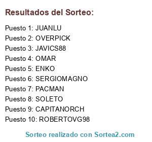 Lista de participantes: ROBERTOVG98, OMAR, OVERPICK, CAPITANORCH, SOLETO, JAVICS88, ENKO, SERGIOMAGNO, JUANLU, PACMAN.