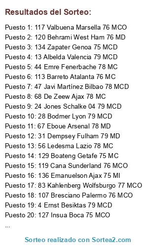 sorteo centrocampistas