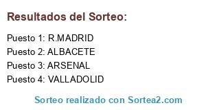 Lista de participantes: ARSENAL, R.MADRID, VALLADOLID, ALBACETE.