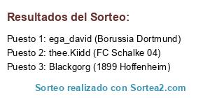 Lista de participantes: ega_david (Borussia Dortmund), thee.Kiidd (FC Schalke 04), Blackgorg (1899 Hoffenheim).
