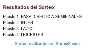 Lista de participantes: INTER, LEICESTER, LAZIO, PASA DIRECTO A SEMIFINALES.