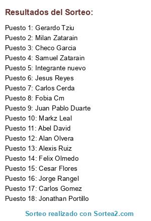 Lista de participantes: Alexis Ruiz, Markz Leal, Milan Zatarain, Checo Garcia, Samuel Zatarain, Abel David, Jesus Reyes, Carlos Gomez, Jorge Rangel, Gerardo Tziu, Fobia Cm, Carlos Cerda, Jonathan Portillo, Cesar Flores, Alan Olvera, Juan Pablo Duarte, Felix Olmedo, Integrante nuevo.