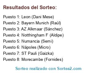 Lista de participantes: AZ Alkmaar (Sánchez), Morecambe (Fornides), ST Pauli (Gaizka), Leon (Dani Mese), Notthingham F (Aldipe), Numancia (Semi), Nápoles (Micro), Bayern Munich (Raúl).