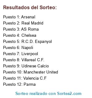 Resultados del sorteo: