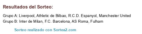 Lista de participantes: Athletic de Bilbao, R.C.D. Espanyol, F.C. Barcelona, AS Roma, Fulham, Liverpool, Manchester United, Inter de Milan.