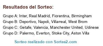 Lista de participantes: Stoke City, Birmingham, Aston Villa, Manchester United, Everton, West Brom, Deportivo, Real Madrid, Villarreal, Getafe, Valencia, Inter, Napoli, Fiorentina, Udinese, Palermo.