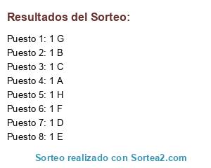 Lista de participantes: 1 A, 1 B, 1 C, 1 D, 1 E, 1 F, 1 G, 1 H.