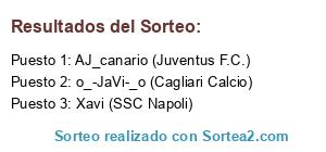 Lista de participantes: Xavi (SSC Napoli), o_-JaVi-_o (Cagliari Calcio), AJ_canario (Juventus F.C.).