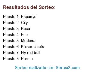 Lista de participantes: Espanyol, Fcb, Boca, Modena, Parma, City, Ny red bull, Káiser chiefs.