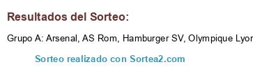 Resultados del sorteo: