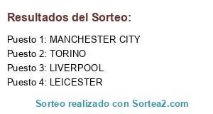 Lista de participantes: LEICESTER, LIVERPOOL, MANCHESTER CITY, TORINO.