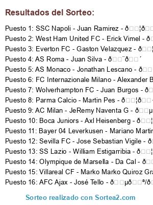 Lista de participantes: 1- AC Milan - JeRemy Naventa G - 🇵🇪/🇦🇷, 2- SS Lazio - William Estigarribia - 🇦🇷, 3- Villareal CF - Sebas Navarro - 🇵🇪/🇦🇷, 4- Parma Calcio - Martin Pes - 🇦🇷, 5- SSC Napoli - Joaquín Combina - 🇦🇷, 6- AS Roma - Juan Silva - 🇨🇴, 7- Everton FC - Gaston Velazquez - 🇦🇷, 8- Sevilla FC - Jose Sebastian Vigile - 🇦🇷, 9- FC Internazionale Milano - Alexander Bello - 🇨🇴, 10- Olympique de Marsella - Jasson Dlc - 🇵🇪/🇦🇷, 11- West Ham United FC - Andres Espitia - 🇨🇴, 12- AS Monaco - Jonathan Lescano - 🇦🇷, 13- Bayer 04 Leverkusen - Mariano Martinez- 🇦🇷, 14- Boca Juniors - Axl Heisenberg - 🇦🇷, 15- AFC Ajax - José Tello - 🇵🇪/🇦🇷, 16- Wolverhampton FC - Juan Burgos - 🇦🇷, 17- Valencia CF - Carlos Mirmidones - 🇨🇴.