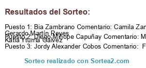 - Ganador 1: Bia Zambrano Comentario: Camila Zambrano Gerardo Martín Reyes Katia Yturria Galvez