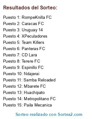 Lista de participantes: Metropolitano FC, RompeKnilla FC, Caracas FC, CD Lara, Mbarete FC, Terere FC, Samba Reloaded, Ndajerai, Paila Mecanica, Huachipato, XPeculadores, Uruguay 14, Espinillo FC, Team Killers, Panteras FC.