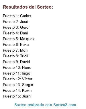 Resultados del sorteo: