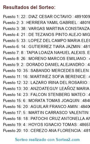 - Puesto 13: 16 MARTINEZ SOFIA BERENICE 48338997