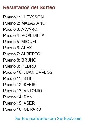 Lista de participantes: MIGUEL, BRUNO, SEFIS, ALBERTO, ALEX, ÁLVARO, ANTONIO, ASER, DANI, GERARD, JHEYSSON, JUAN CARLOS, MALASIANO, PEDRO, POVEDILLA, STIF.