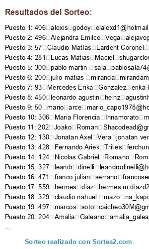 - Puesto 56: 392 federico raul acosta federaulacosta@gmail.com