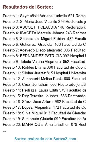 - 1 Voucher Refugio Vallecitos para 2 personas por una noche : López Alejandra 472 Facultad de Odontología alelopez@fodonto.uncu.edu.ar