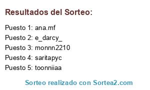 Lista de participantes: nadiafallacamach, marigalga56, niko5e, saritapyc, maryalamerymery, e_darcy_, esther_dmas, ana.mf, andreamhos, isaloyal, esti_garcia, veero.garciia, bea_antiara, pilar.gtrz, toonniiaa, monnn2210.