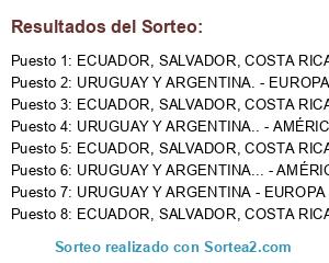 - Puesto 8: ECUADOR, SALVADOR, COSTA RICA , COLOMBIA ,PERU, CHILE, BRASIL - EUROPA