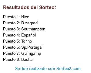 Lista de participantes: Guimgamp, Southampton, Bastia, D.zagred, Sp.Portugal, Torino, Nice, Español.