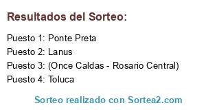 Lista de participantes: Lanus, Toluca, (Once Caldas - Rosario Central), Ponte Preta.