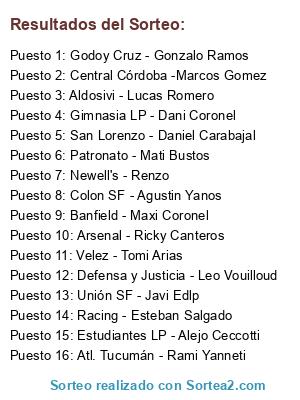 Lista de participantes: Defensa y Justicia - Leo Vouilloud, Racing - Esteban Salgado, Velez - Tomi Arias, Gimnasia LP - Dani Coronel, Colon SF - Agustin Yanos, Estudiantes LP - Alejo Ceccotti, Patronato - Mati Bustos, Newell's - Renzo, Unión SF - Javi Edlp, Banfield - Maxi Coronel, Central Córdoba -Marcos Gomez, Atl. Tucumán - Rami Yanneti, San Lorenzo - Daniel Carabajal, Arsenal - Ricky Canteros, Aldosivi - Lucas Romero, Godoy Cruz - Gonzalo Ramos.