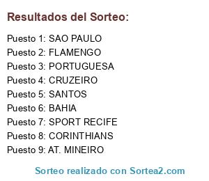 Lista de participantes: SPORT RECIFE, SANTOS, PORTUGUESA, AT. MINEIRO, BAHIA, FLAMENGO, SAO PAULO, CRUZEIRO, CORINTHIANS.
