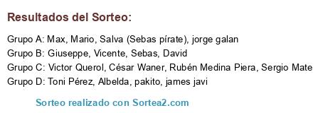 Lista de participantes: Albelda, Sergio Mate, Rubén Medina Piera, jorge galan, Salva (Sebas pírate), Vicente, james javi, pakito, Victor Querol, Giuseppe, César Waner, David, Mario, Max, Toni Pérez, Sebas.