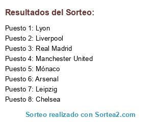 Lista de participantes: Arsenal, Lyon, Mónaco, Manchester United, Chelsea, Leipzig, Real Madrid, Liverpool.