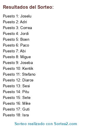 Resultados del sorteo: