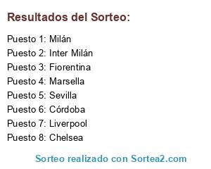 Lista de participantes: Córdoba, Inter Milán, Milán, Fiorentina, Sevilla, Marsella, Liverpool, Chelsea.
