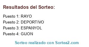 Lista de participantes: RAYO, ESPANYOL, GIJON, DEPORTIVO.