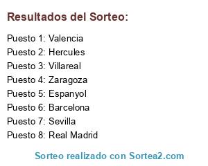 Lista de participantes: Real Madrid, Sevilla, Valencia, Hercules, Barcelona, Villareal, Zaragoza, Espanyol.