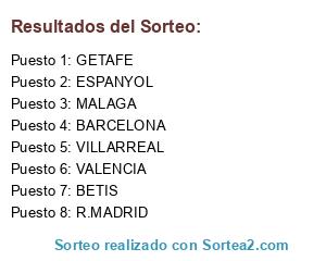 Lista de participantes: BETIS, VILLARREAL, R.MADRID, VALENCIA, GETAFE, ESPANYOL, MALAGA, BARCELONA.