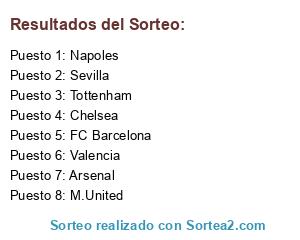 Lista de participantes: FC Barcelona, Chelsea, M.United, Arsenal, Tottenham, Napoles, Valencia, Sevilla.