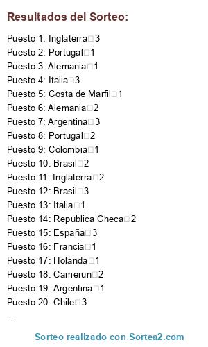 Resultados del sorteo: