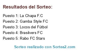 Lista de participantes: Brasilvers FC, Bamdaliers CF, La Chapa F.C, Caladas FC, Rabo FC Stars, Gamba Style FC, Locos del Fútbol.