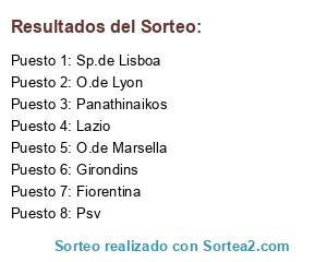 Lista de participantes: Lazio, Psv, Girondins, O.de Marsella, O.de Lyon, Panathinaikos, Sp.de Lisboa, Fiorentina.