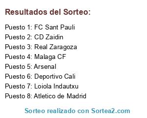 Lista de participantes: Real Zaragoza, CD Zaidin, Deportivo Cali, Arsenal, FC Sant Pauli, Loiola Indautxu, Atletico de Madrid, Malaga CF.