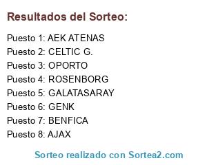 Lista de participantes: AJAX, CELTIC G., GALATASARAY, OPORTO, AEK ATENAS, BENFICA, ROSENBORG, GENK.